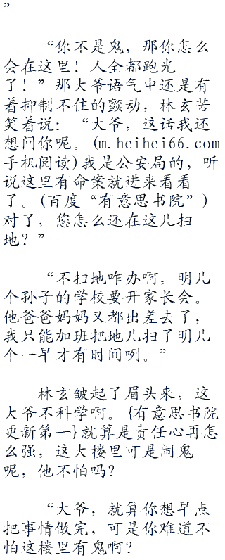 那大爷继续扫着自己的地,林玄怀疑他是不是耳朵不太好,所以提高了声音大声喊了一句:“大爷!”