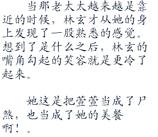 林玄眯起了双眼,但刚眯起来的时候便看到一个垂着脑袋的女子正拖着一具尸体!