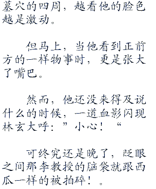 “李教授,死了一个伤了两个。”有人一脸悲戚的说道,李教授长出了一口气,实话说这样的伤亡对于他而言,算不上太大。