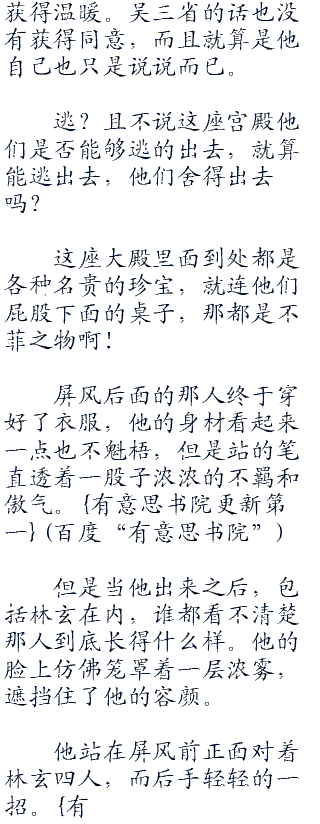 林玄四人往前走了进去,那门口的六个宫女全都恭敬的行礼。一走进宫殿之中,眼前的视线一下子光亮起来。而且吴三省手上还抓着一个矿灯,此刻还显得有些滑稽。