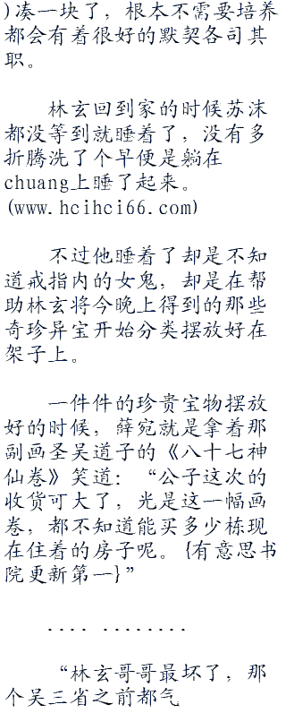林玄说了声,便又是收了不少东西到戒指里面。戒指里面的女鬼们都开始抗议了。林玄每到一处墓穴,她们能活动的空间就会缩短一些。别人恨不得躺在金银财宝上睡呢,但是戒指里面的东西多的已经让人提不起兴趣了。