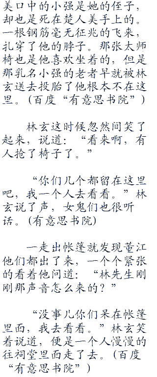“也许它也在观望,还不确定我回来对它而言是好是坏吧!”林玄微微笑道,薛宛点了点头不过马上想了想,就笑道:“现在估计会有太多能对公子您有威胁的东西吧,千年的鬼王在八方血尸墓就被斩杀。僵尸的话只要不是被围攻,您也不用担心。干尸和尸煞,就更对你没什么危险了。”