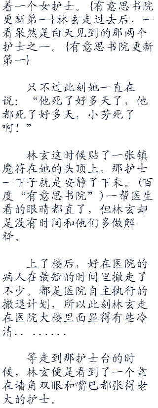 祁曼闻言脸色一变,放下筷子就对着林玄说道:“医院发生邪修杀人事件!”