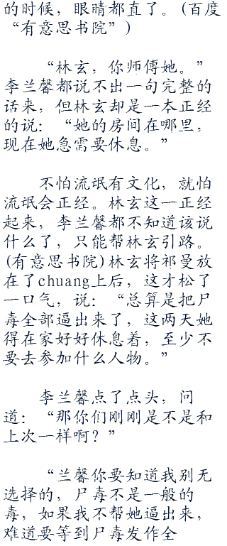 李兰馨遇到过一次林玄帮人解尸毒,那就是吴三省的那一次。所以祁曼会痛苦也是她意料中的事情,此刻坐在大厅里面很想去看看怎么回事却也只能先忍着了!