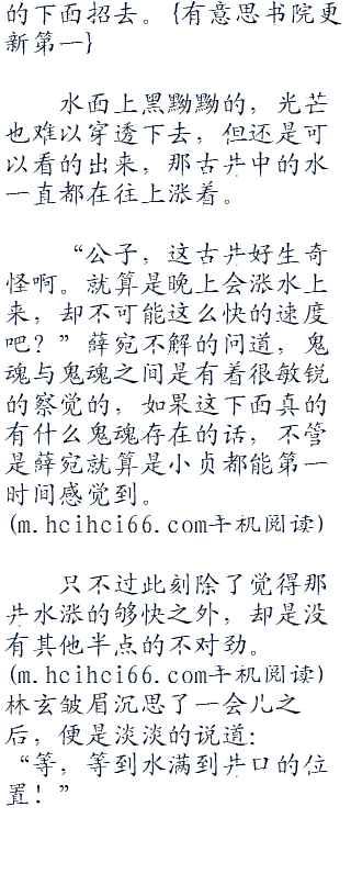 林玄嗯了一声,一人几鬼便是朝着前方慢慢的走去。这故宫之中据说有着一口神秘的古井,这古井之中白天往下看去的时候只是一些杂草与碎石块。可一到晚上的时候便是会从干燥的地面下溢出水来填满整个古井,不过那水却始终不满出来,就这么恰好到井口的位置。