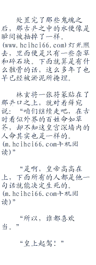 “造孽啊!”这时候的薛宛都忍不住说了一声,林玄将那婴魂直接收进了轮回道中,说道:“这口井存在已久,这井历经两朝。宫中内斗最是凶悍,里面的阴魂也不知道有多久。以我看来只要有这口井在的话,那这紫禁城中就将一直有鬼魂出没啊!”