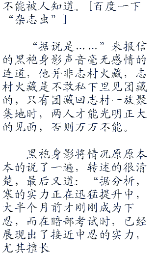 让暗部考试中杀掉寒,这正是团藏的命令,虽说“根”是暗部的一部分,暗部可以算作一个统称,分别是暗杀战术部队,以及特别机动部队,而实际上,暗部的主体,也就是暗杀战术部队,一直都被三代目火影猿飞日斩牢牢掌握在手中。
