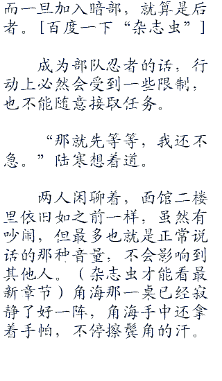 木叶的忍者分为两种,一种之自由任务忍者,另外一种则是部队忍者,陆寒此时是前者,可以随时接任务,也可以随时休息,<div class="divimage"><img src="<div class="divimage"><img src="<div class="divimage"><img src="<div class="divimage"><img src="<div class="divimage"><img src="<div class="divimage"><img src="<div class="divimage"><img src="<div class="divimage"><img src="<div class="divimage"><img src="<div class="divimage"><img src="