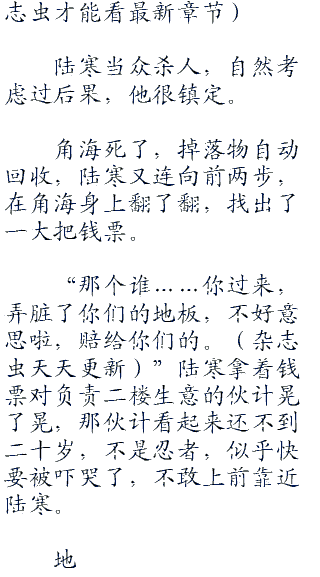 角海甚至对用武力杀人充满了鄙夷,这是一种有病态倾向的心理,杀人就是杀人,只要能成功,不论手段怎样,但角海不这么认为。