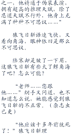 “呃……他叫角海是吗?”陆寒脸色一惊一乍的,好似不知道猿飞日斩为何这么大反应。纲手则神情怪异,她许久没见老师这样失态,连忙问道:“老师……他是?”