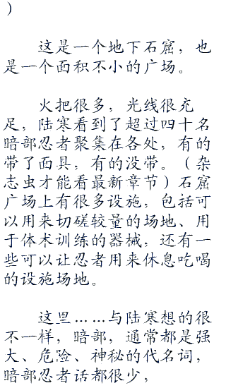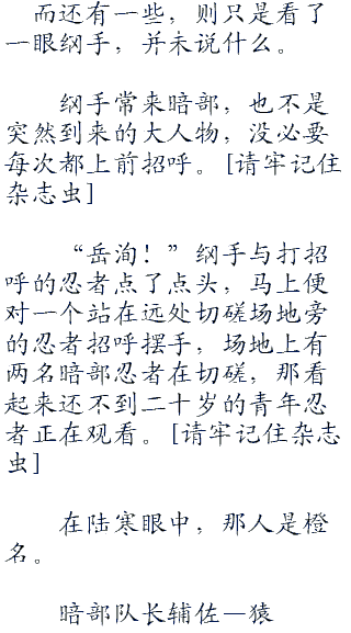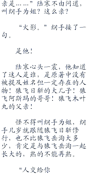纲手带着陆寒进入后山森林,不断跳跃前进。陆寒没看过后山森林的全貌,不了解地形,所以也无法判定自己究竟是在什么位置。