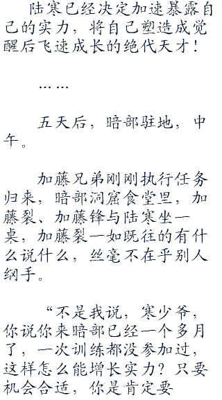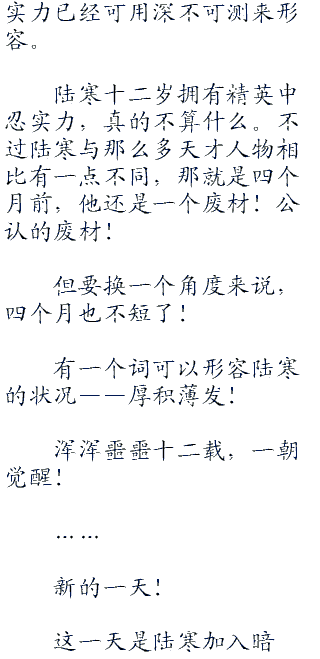 日向洛凝不告密,这让陆寒暂时安全了,这很有意思,明明已经有人知道陆寒的真实实力,知道陆寒真实实力的那人却并没有怀疑陆寒。