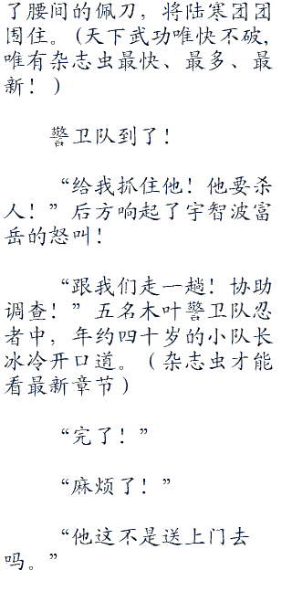 “我有任务,我说了三次我有任务!”陆寒森冷望着宇智波富岳道,“无理由妨碍忍者执行任务,罪同叛村!”
