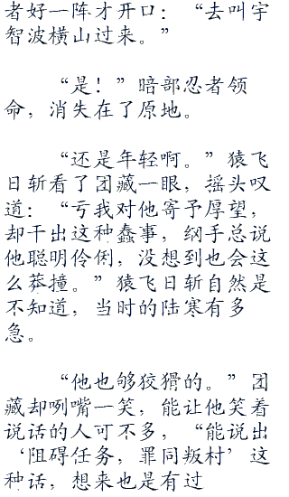 团藏捏着棋子,深思多时,看了对面的猿飞日斩一眼,这才落子!