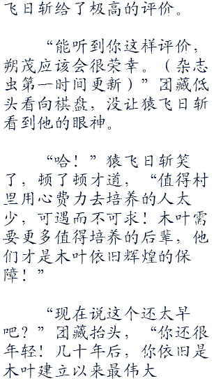 猿飞日斩听到落子声,15睁眼看去,不由一叹:“好棋!”说着,他又拿起一白字,不假思索直接落下,棋盘上局势再次逆转。