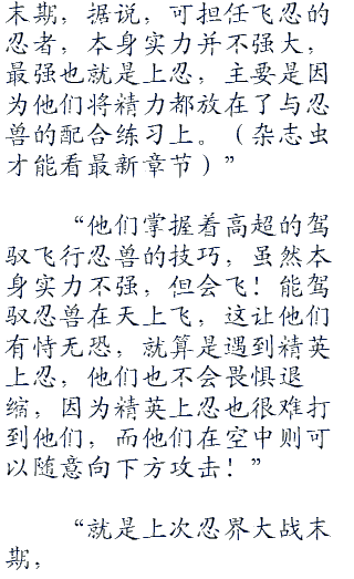 不是灭绝在第二次忍界大战,就是第三次忍界大战,那种可载人的大型飞行忍兽数量太少,生长周期长,繁殖困难,只有在全面战争时期,水之国雾隐村才会大规模动用。