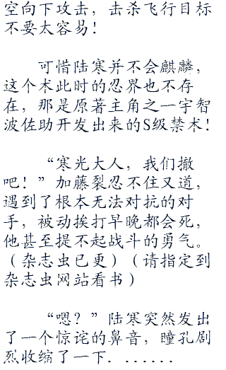 “飞忍?是飞行忍兽!”陆寒马上便想到,飞忍是水之国独有的战斗忍者兵种,这种忍者原著中并未提到,陆寒是从暗部情报中看到的,结合原著来推测,飞忍应该是原著剧情开始时,也就是木叶六十年时,都已灭绝。
