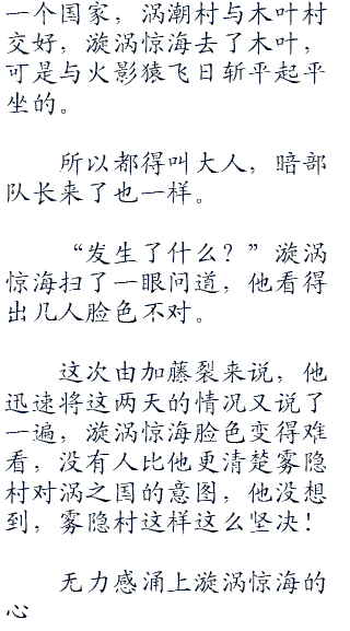 虽说漩涡惊海只是涡之国这个小国家的第一强者,如果放在木叶,他的实力可能连前五都排不进去,但他代表的是一个忍村,甚至可以说是<div class="divimage"><img src="<div class="divimage"><img src="<div class="divimage"><img src="<div class="divimage"><img src="<div class="divimage"><img src="<div class="divimage"><img src="<div class="divimage"><img src="<div class="divimage"><img src="<div class="divimage"><img src="<div class="divimage"><img src="