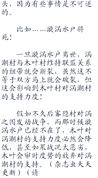 对于纲手三人来说,飞忍本身的威胁不大,关键在于,雾隐村竟然派出飞忍,这几乎已经说明他们有战争意图!事大了!