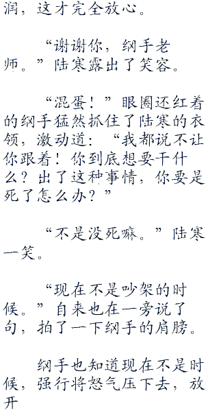 “小寒!”纲手也终于叫出声,冲到了陆寒身边,一把将满身是血的陆寒抱在怀里,也顾不得陆寒身上脏,陆寒在这一刻双腿一软,直接倒在了纲手身上。