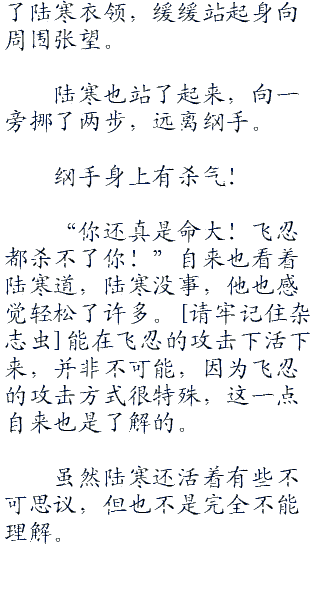 刺目的火光照射下,陆寒紧握着在滴血的刀,他的手臂有些颤抖,一条腿抖动的更加剧烈,似乎将要站立不住。他的双眼中充斥着紧张、愤怒,以及杀意,血丝密布。