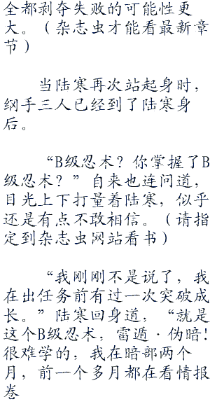 陆寒的速度毫无疑问的快!而飞忍反应的速度也不慢,本多雾在地面崩裂的第一时间便做出了反应,而他的反应并非升高,而是甩手丢出苦无试图攻击陆寒!