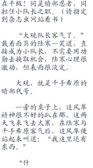 雾隐村忍者主要擅长水遁忍术,所以陆寒得到的大部分忍术卷轴都是水遁,最高才b级,已经不会让陆寒有太多激动的情绪,忍术在精不在多,陆寒最想要的是a级忍术的卷轴,随便一个最低也价值10元宝。
