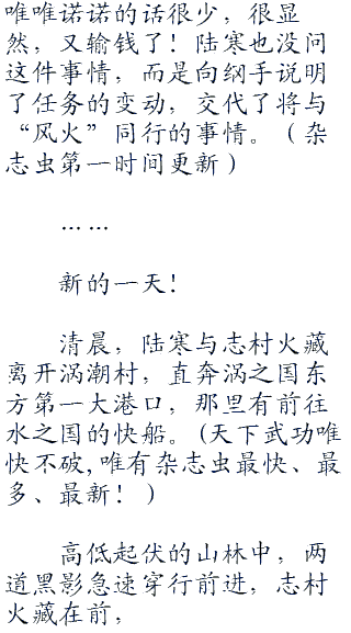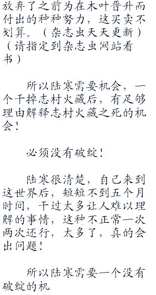 下午,陆寒还没有离开,他要拖延时间,得与加藤裂等人错开前往水之国的时间,这样他与志村火藏一同上路后才不会被打扰。