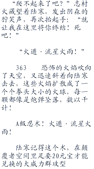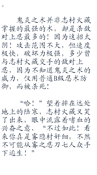 “你怎么会影闪之术?你怎么会根?”志村火藏惊叫着横刀相拦!