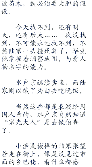 陆寒向前走着,肩膀有些歪,像是有些吃力,他的肩膀上扛着稍小的渔网,那渔网还在向下滴水,里面装了上百条大小不一的鱼,恐怕得有六七十斤重。