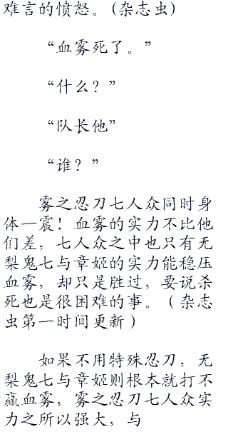 雾隐村早已派出大量斥候忍者与暗部忍者对水之国进行搜寻,雾之忍刀七人众只需要等消息,他们需要一条线索,只要有一条线索能够追查“寒光”,他们机会行动。