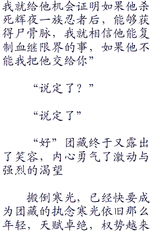 “辉夜一族?”团藏一愣,辉夜一族是水之国一拥有血继限界的强族,