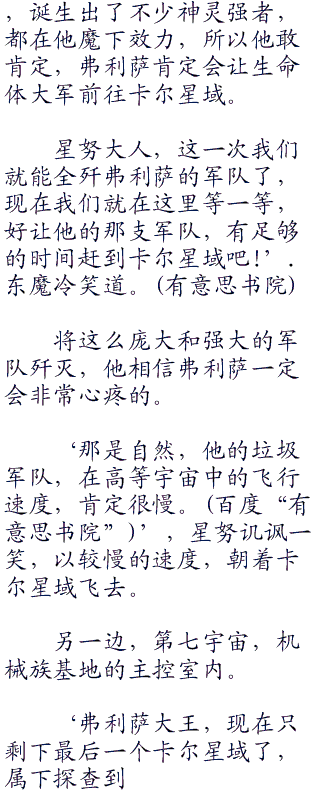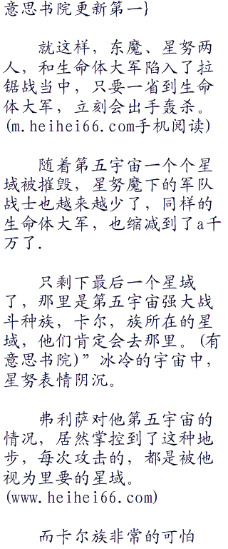 可是同样对打游击战的生命体大军毫无办法,无法锁定生命体大军的位置.只能一次次的赶在生命体大军后面吃灰,这种憋屈,根本难以用言语表达出来。w w w hei hei 66 c o br />