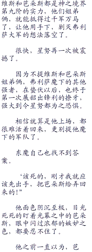 既然东魔和星努想玩,那他弗利萨就陪对方玩玩,顺便等恶魔系统升级完毕,将东魔等人虐的更彻底,否则一下子就结束了第五宇宙的征战,也的确太没有惫思了点.