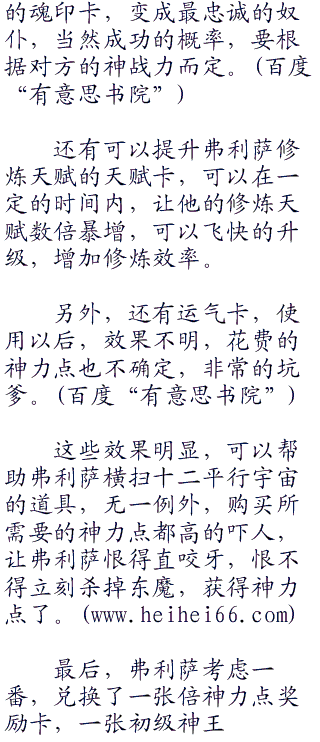 这.六八七”些神力点奖励卡,就像是前世网游中,多倍经验的奖励一样,最为惊人的是,这些神力点奖励卡,售价居然是固定的。