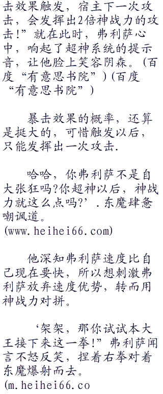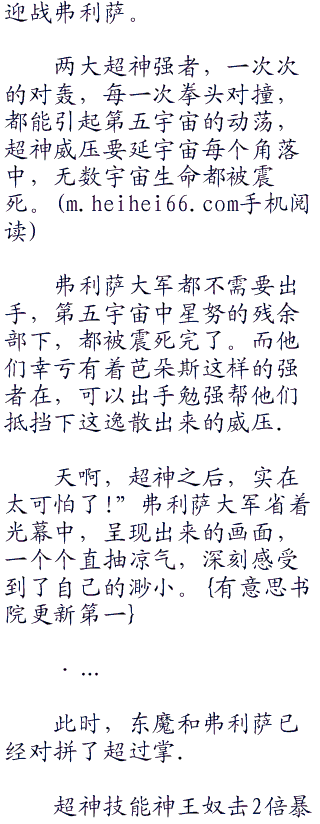至于终于摆脱了东魔追击的弗利萨大军,被维斯和芭朵斯带着远离了两大超神强者交手的战场,终于松了口气。有意思.书 院。 ww w .heihei 66.co br />