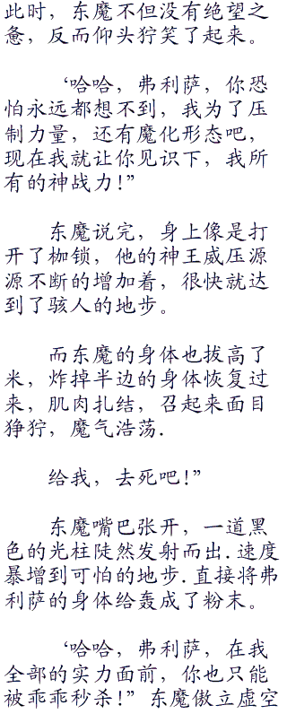 随着时间的流逝,弗利萨依旧没有动醉,而东魔却忍不住了。