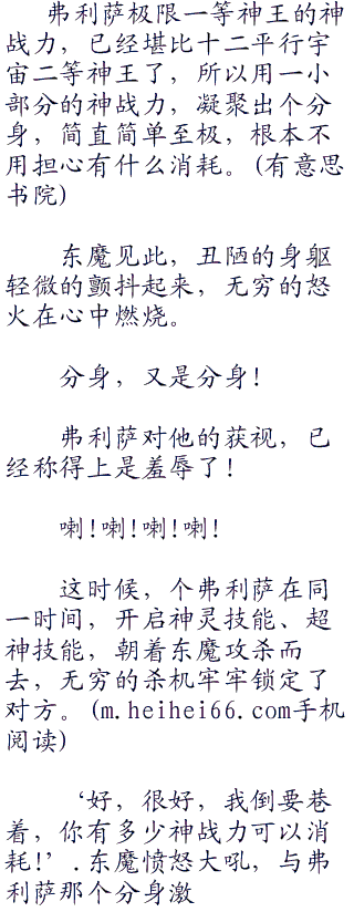 ‘弗利萨,你这个垃圾,难道你不知道,神王强者凝聚分身,是需要消耗能量的吗?更何况你每个分身,都达到了超神的层次!难道你以为靠着分身,就能杀死我吗!’.东魔冷声说道,双目之中爆发出愤怒的火焰。