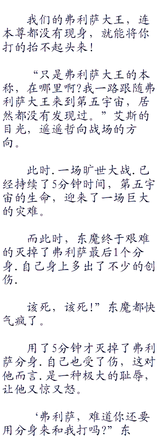 刚才将他虐得那么惨.靠着魔化形态才将其轰杀的对手.居然也只是弗利萨的一道分身!那要是弗利萨本称降临.该有多么的强大啊!