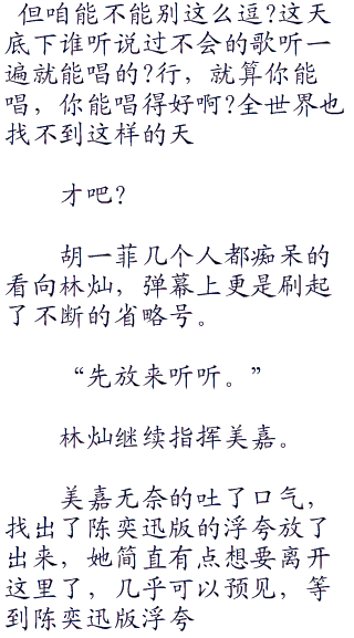 胡一菲、陈美嘉、林宛瑜三个女孩子感触更深,看着近在咫尺的林灿,她们觉得自己的心似乎都被他的声音融化了,几乎是不由