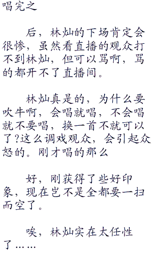 终于一曲唱完了.林灿干咳了两声.将屋中沉醉的人都惊醒过来。