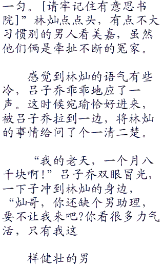 这时候,门被推开了,吕子乔那婉转的四川话传来:“灿哥,我来啦…
