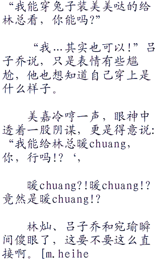 “这…这….是啥子情况?‘,吕子乔有点结巴了,用力地咽了一口唾沫,tian了下嘴唇,“美嘉,你怎么穿的这么…