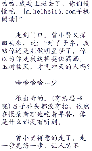 “清洁人员?曾小贤,你是不是脑袋被马桶夹住了还没醒过来?他要了你的签名照恐怕是卫生间没有纸擦屁.股了吧!“一菲冷言说着。