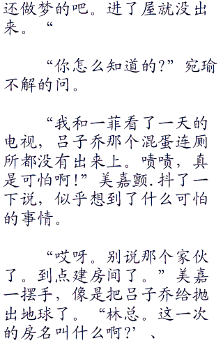一菲讨了个没趣,瞅了眼林灿就不说话了。倒是旁边的美嘉接过来了话头说:‘.他还找工作?哈哈哈,真是笑死我了。他恐怕还在想着他