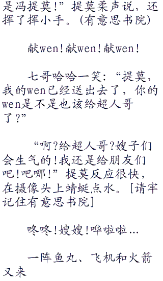 “话说.嫂子们不会生气吧?”七哥又来找事儿了。