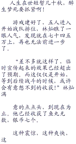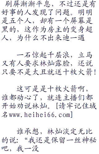 刷屏区的火爆在林灿的预料之中。只是嘿嘿笑了一声,就没有了动静。大家心知肚明就好,说太多就不好玩了。