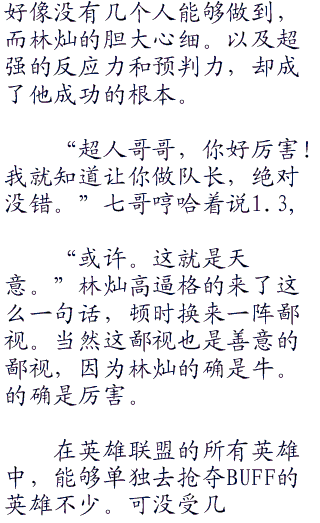 七哥咽了口唾沫,十分不理解这个技术高超的男人又有什么可怕的想法:‘,超人哥,你确定?这个打法有点危险啊。“