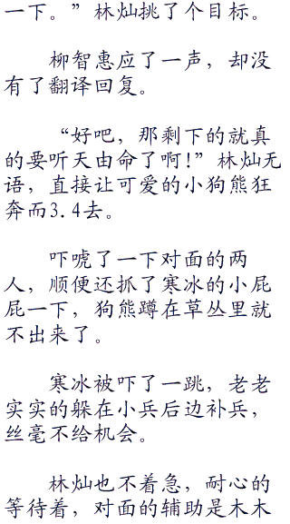 林灿无语了,用力的挥了挥手,深吸了几口气,才平心静气,仿佛是什么都没有发生一般,说:‘l好了,我们开始五排了。精彩会