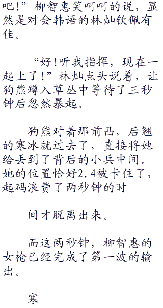 宛瑜就要聪明多了。她点点头。说:‘l肯定不是打蚊子,灿哥应该是腿疼,需要力量的打击!”